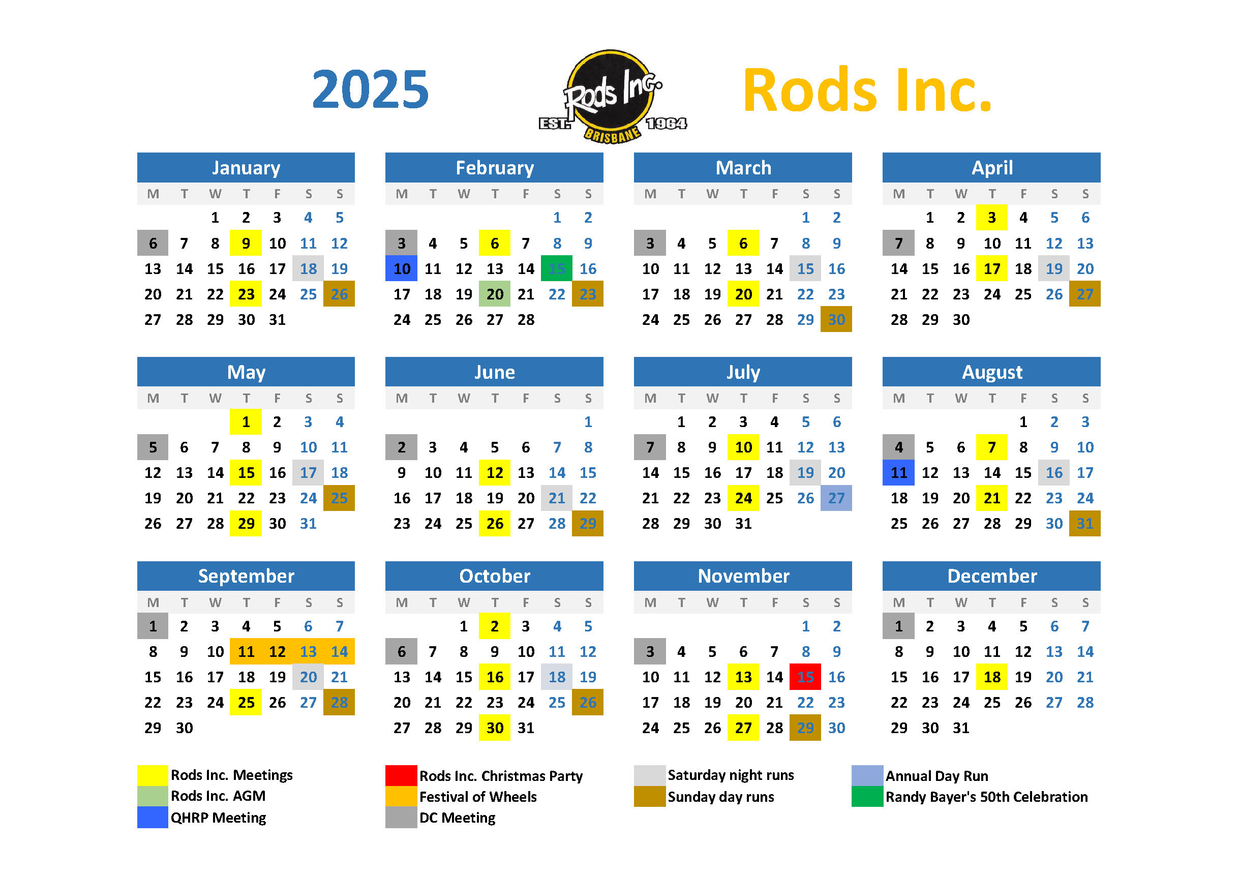 Our meetings are marked in yellow on the calendar, it would be nice to see you at a meeting