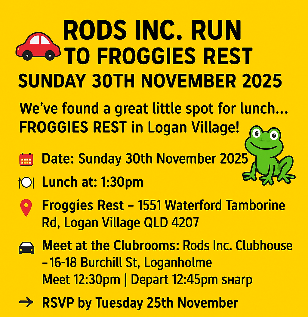 📍Meeting point: Rods Inc. Clubhouse – 16–18 Burchill St, Loganholme